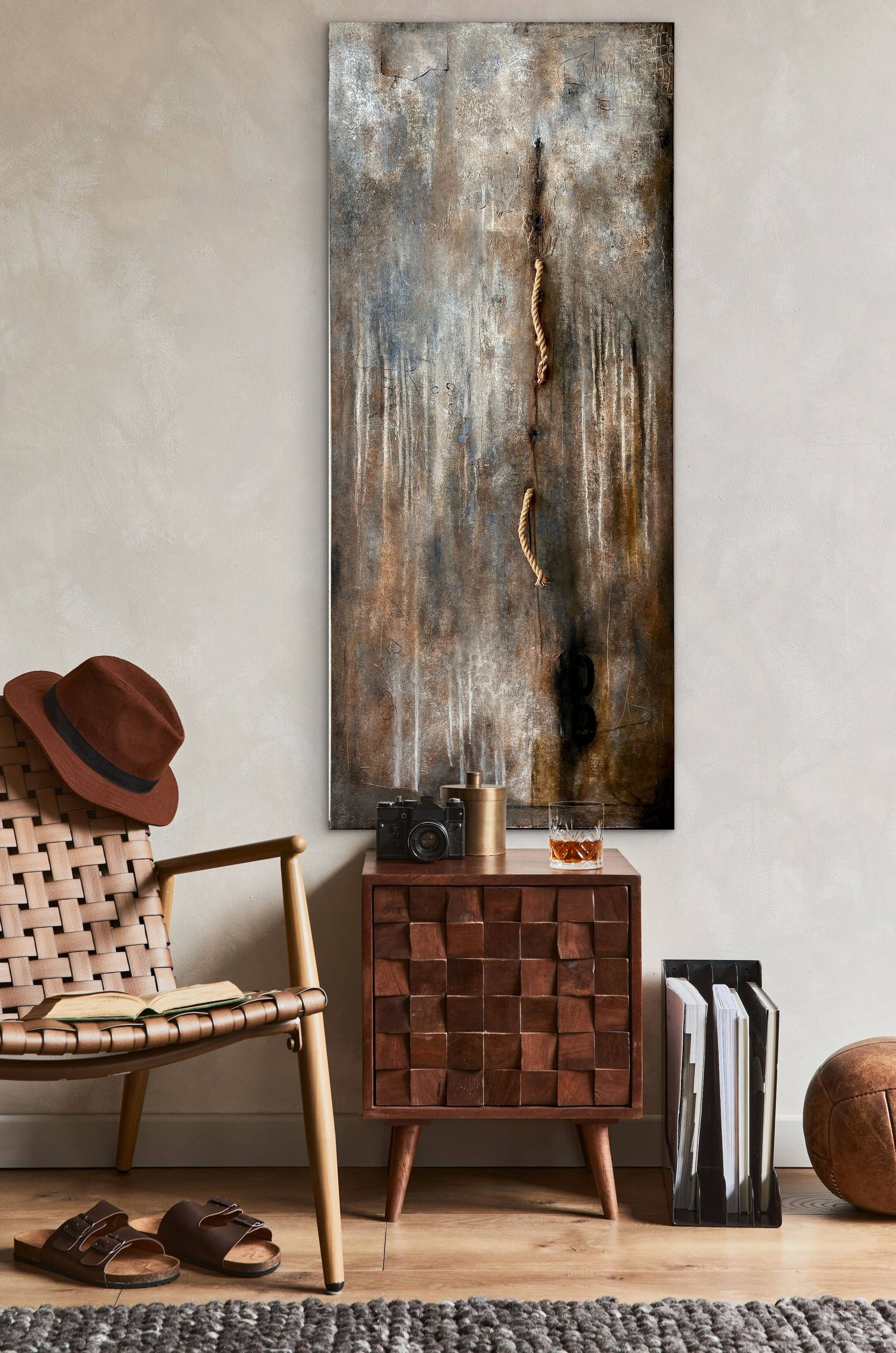 Acrylic on canvas, worked in approx. 20 layers, alternating between light and dark. Rusty, old, weathered.